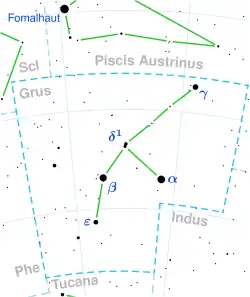 - φ Gruis, estrella blanco-amarilla de magnitud 5,55.