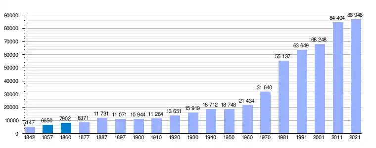 Los daños causados por la guerra de Independencia y el cierre de la Real Fábrica de Paños en 1822 provocaron un nuevo declive en la ciudad.[8] En adelante, hasta la segunda mitad del siglo XX, la ciudad se recuperó gracias a su función administrativa, como capital de provincia y sede de instituciones como la Academia de Ingenieros Militares o la Diputación de Guadalajara.[9] El crecimiento, aunque lento, transforma la población, que alcanza los 11 000 habitantes en 1900.