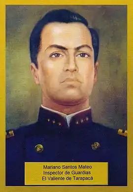 Durante la Guerra del guano y del salitre con Chile, la Guardia Civil del Perú tuvo una participación notable combatiendo junto al Ejército del Perú y es en la Batalla de Tarapacá donde sobresale el Guardia Civil Mariano Santos Mateo cuya acción fue decisiva para que el Ejército del Perú obtenga la victoria en dicha acción de armas. Mariano Santos Mateo, el Valiente de Tarapacá, perteneció al Batallón de Infantería "Guardias de Arequipa" N.º 25, Unidad compuesta por 6 Compañías de Guardias Civiles, y en esa batalla logró capturar, para las armas peruanas, la coronela regimentaria (bandera) del Regimiento "2.º de Línea" de la Infantería del ejército adversario siendo felicitado por su acción y ascendido al grado policial de Inspector de Guardias de la Guardia Civil del Perú.