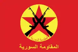 La formación del Ejército Sirio Libre (FSA, siglas en inglés) fue anunciada el 29 de julio de 2011 por un grupo de oficiales sirios desertores. Alentando a otros a desertar para "defender a los manifestantes civiles de la violencia del Estado y efectuar un cambio de gobierno".[176] Para diciembre, las estimaciones del número de desertores a la FSA oscilaban entre 1000 y más de 25 000.[177] La FSA, inicialmente con sede en Turquía, trasladó su sede al norte de Siria en septiembre de 2012, funcionando más como una organización paraguas que como una cadena de mando militar tradicional.