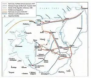 Para finales de ese año, el 7.º Ejército Rojo controlaba Estonia casi en su totalidad, rodeando a Tallin a 34 kilómetros en el este, desde Tartu en el oeste y desde Ainazi en el sur.[2]