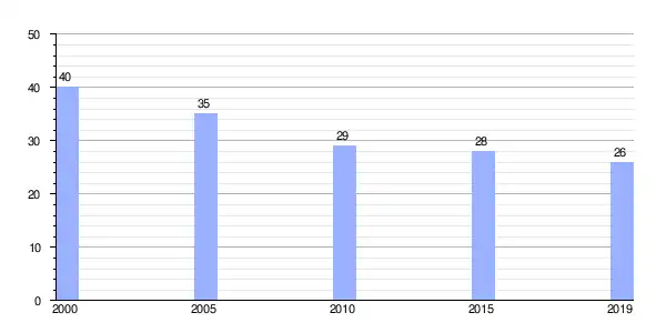 | Gráfica de evolución demográfica de Guillén (aldea) entre 2000 y 2019 |