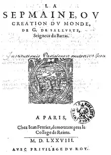 La Sepmaine o La Semaine, ou Création du Monde (1578) es un poema enciclopédico que expone los conocimientos humanos siguiendo el orden de los seis primeros días de la creación. Fue traducido al alemán, inglés, holandés, italiano, latín y también al español por Francisco de Cáceres con el título de Los siete días de la semana, sobre la Criación del Mundo, Amberes, 1612; Ámsterdam, 1612-1613.