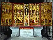 Entre esas obras del entorno renano estarían la tabla sobre el sepulcro del arzobispo Cunon II de Falkenstein o Kuno von Falkenstein[5] (muerto en 1388) en la basílica de San Castor[6] de Coblenza, el retablo de las clarisas[7] de la catedral de Colonia y el de la Virgen de la flor del algarrobo (Vierge à la fleur de vesce) actualmente en el Wallraf-Richartz Museum.