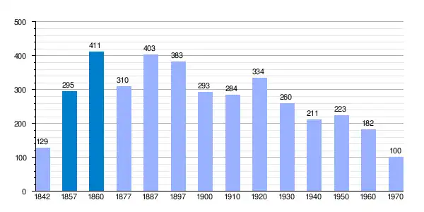 | Gráfica de evolución demográfica de Guils[3] entre 1842 y 1970 |