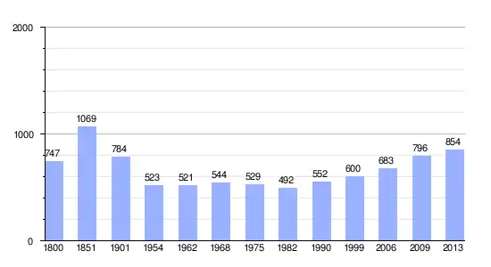 | Gráfica de evolución demográfica de Guitalens-L'Albarède entre 1800 y 2013 |