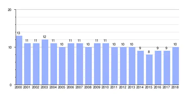 | Gráfica de evolución demográfica de Guldrís entre 2000 y 2018 |