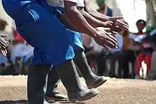 La danza gumboot o gumboots, también conocida en zulú como isicathulo, es una danza originaria de Sudáfrica en la que los ejecutantes que llevan puestas unas botas de goma y realizan rutinas de percusión corporal en las que se incluyen los sonidos que se pueden obtener de las botas de goma. Estos sonidos constituían una serie de códigos o avisos diferentes para transmitir un mensaje a otra persona situada a poca distancia. Este sistema fue empleado para que los trabajadores pudiesen comunicarse entre sí en las minas, ya que estaba rigurosamente prohibido hablar.[1]