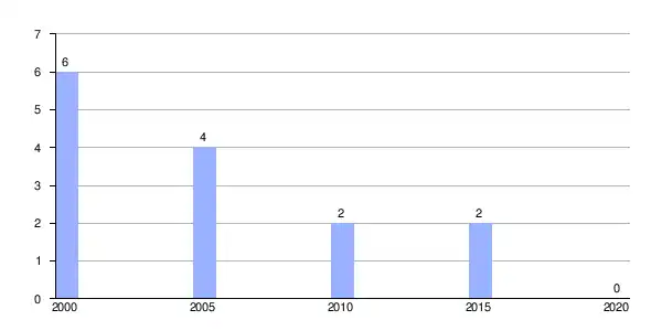 | Gráfica de evolución demográfica de Guntín (despoblado) entre 2000 y 2020 |