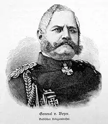 Cuando, tras la paz de Praga, el gran duque Federico I de Baden ordena la modernización completa de la división de Baden según el modelo prusiano, Beyer se traslada a Karlsruhe en 1867 como militar plenipotenciario prusiano. Con la aprobación del alto mando prusiano, entra al servicio del Gran Ducado de Baden el 18 de febrero de 1868 como ministro de guerra y ayudante general del gran duque.[6]