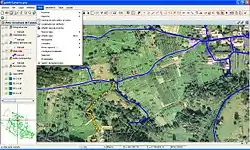 - GPS: Conexión a GPS interno/externo, reproyección a UTM, waypoints, tracklog en formatos GPX y CSV, centrado en vista, parámetros de señal, cálculo de la distancia entre ubicación y punto de destino.