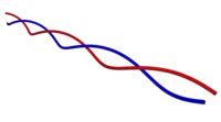 La línea azul es una hélice, y la roja es otra, formando juntas una doble hélice.