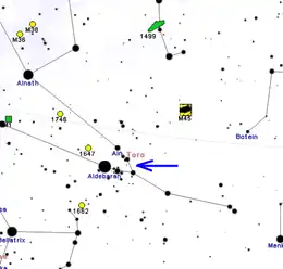 | Ain | Épsilon Tauri | 3,54 | G9.5 III | Posee un planeta extrasolar |