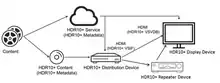 HDR10+ es una alternativa a Dolby Vision, que también utiliza metadatos dinámicos.[3] HDR10+ es la variante predeterminada de metadatos dinámicos como parte del estándar HDMI 2.1.[4]