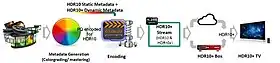 HDR10+[1] es una tecnología de video de alto rango dinámico (HDR) que agrega metadatos dinámicos[2] a los archivos fuente HDR10. Los metadatos dinámicos se utilizan para ajustar y optimizar cada cuadro del video HDR a las capacidades de la pantalla del consumidor de una manera basada en las intenciones del creador del contenido.