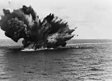 A los cuatro minutos del impacto de los torpedos, y cuando el HMS Barham comenzaba a escorarse peligrosamente a babor, explotó el polvorín que almacenaba los proyectiles de 381 mm; la explosión fue tan violenta que el acorazado estalló y elevó una gigantesca columna de humo que cubrió por completo su hundimiento. Un total de 862 tripulantes perecieron, entre ellos su comandante, el capitán G.C. Cooke. Hubo 395 supervivientes, rescatados por los destructores HMS Hotspur y HMAS Nizam. El hundimiento fue capturado en una película por un camarógrafo de Pathé News a bordo del Valiant.[1]