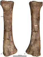 ![]() Húmero izquierdo del espécimen tipo. | ||