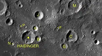 Por convención estos elementos se identifican en los mapas lunares colocando la letra en el lado del punto central del cráter más cercano a Haidinger.