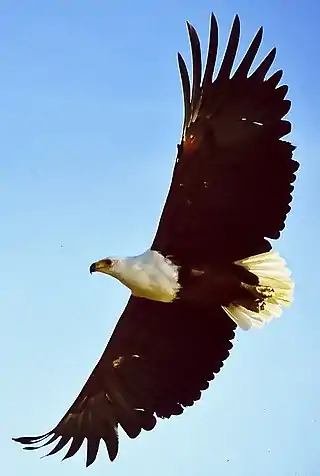 El pigargo vocinglero (Haliaeetus vocifer) es una especie de ave accipitriforme de la familia Accipitridae ampliamente distribuida por los ríos y lagos del África subsahariana, que se alimenta básicamente de peces. No se conocen subespecies.[2]