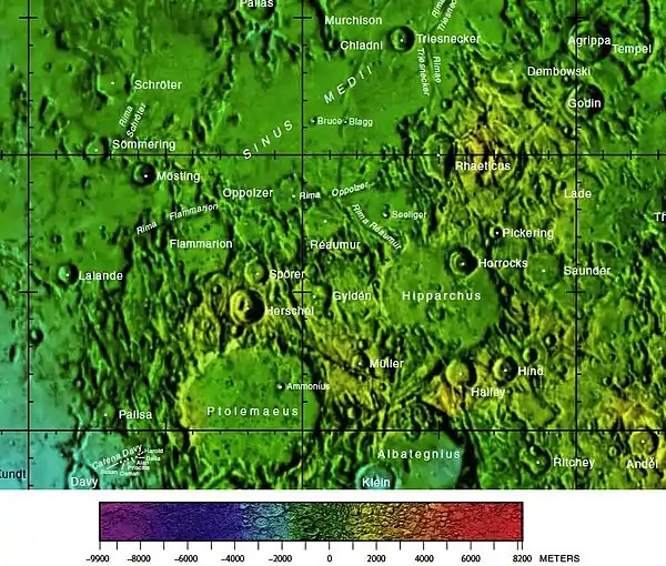 - Menzel, D. H.; Minnaert, M.; Levin, B.; Dollfus, A.; Bell, B. (1971). «Report on Lunar Nomenclature by The Working Group of Commission 17 of the IAU». Space Science Reviews (en inglés) 12: 136.