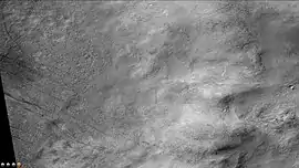 | Cráter Da Vinci, fotografía de la cámara CTX a bordo del Mars Reconnaissance Orbiter. Borde este y noreste del cráter (El norte, hacia la izquierda de la fotografía). |