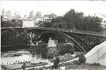 La carretera desde Auckland llegó a Hamilton en 1867 y el ferrocarril en diciembre de 1877. Ese mismo mes, los pueblos de Hamilton West y Hamilton East se fusionaron en un solo municipio.[8] El primer puente de tráfico entre Hamilton West y Hamilton East, conocido como Union Bridge, abrió en 1879. Fue reemplazado por el puente Victoria en 1910.