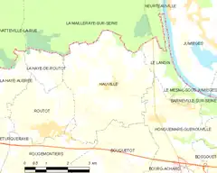 - Situación de Hauville en un mapa de Francia y de comunas limítrofes (en francés)