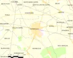 La comuna está situada en la región de Flandes, en la zona de Houtland (tierra de los bosques), a 40 kilómetros de Dunkerque, 43 km de Lille, 53 km de Arras, por otra parte, está próxima a la frontera con Bélgica (16 kilómetros).