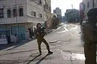 Tras los Acuerdos de Oslo de 1995 y el posterior Acuerdo de Hebrón, las ciudades palestinas se situaron bajo la jurisdicción de la Autoridad Nacional Palestina, con la única excepción de Hebrón,[176] que fue dividida en dos sectores: H1 está controlado por la Autoridad Nacional Palestina y H2 lo está por Israel.[177][178] Cerca de 120.000 palestinos viven en H1, mientras que unos 30.000 palestinos y 700 israelíes viven bajo control militar israelí en H2. A fecha de 2009, un total de 86 familias judías vivían en Hebrón.[179] El ejército israelí no debería entrar en la zona H1 salvo escoltado por fuerzas palestinas, mientras que los palestinos no pueden aproximarse a las zonas donde viven los colonos judíos sin permisos especiales del ejército israelí.[180] Poco después de su división, en 1997, se estableció una Presencia Internacional Temporal en Hebrón (TIPH en sus siglas inglesas) compuesta por observadores de cinco países para controlar la coexistencia y el comportamiento de las partes.[181] Existe consenso en la comunidad internacional sobre la ilegalidad del asentamiento israelí en Hebrón y en Cisjordania en general, aunque el gobierno israelí lo discute.[182]