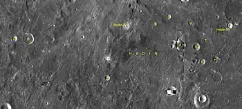 Por convención estos elementos se identifican en los mapas lunares colocando la letra en el lado del punto medio del cráter que está más cercano a Hedin.