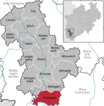 Se encuentra ubicado al suroeste del estado, en la región de Colonia, cerca de la orilla del río Rur —un afluente derecho del río Mosa— y de la frontera con Países Bajos.