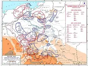 La campaña de septiembre fue ideada por los generales Franz Halder, Jefe del Estado Mayor General y, principalmente, por Walther von Brauchitsch, Comandante en Jefe del Ejército del Alto Mando del Ejército (Oberkommando des Heeres abr. OKH).[28] La totalidad de las tropas blindadas y motorizadas con que, en ese momento, contaba Alemania serían utilizados en la operación, en total para llevar a cabo el plan, von Brauchitsch contaba con 55 divisiones, que se elevaron a 68 el 18 de septiembre. Con estas tropas formó dos agrupaciones con las siguientes tareas[29]