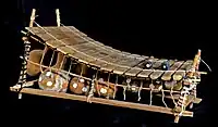 En el siguiente ejemplo, un gyil ghanés interpreta una hemiola como base de una melodía en ostinato. La mano izquierda (las notas más graves) toca los dos tiempos principales, mientras que la mano derecha (notas superiores) hace sonar las los tres rítmicas en cruz.[13]
