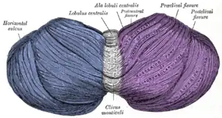 - Esta obra contiene una traducción derivada de «Cerebellar hemisphere» de Wikipedia en inglés, concretamente de esta versión, publicada por sus editores bajo la Licencia de documentación libre de GNU y la Licencia Creative Commons Atribución-CompartirIgual 4.0 Internacional.