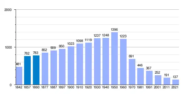 | Gráfica de evolución demográfica de Henarejos[2] entre 1842 y 2021 |