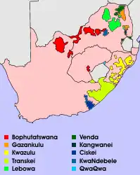 Bajo su gobierno se impulsó la «política de desarrollo separado», cuyo mayor ejemplo son los «bantustán» —oficialmente, Homeland—, nuevos territorios en suelo nacional que operaban como reservas tribales de habitantes no blancos. A través de la Ley de Promoción de Autogobierno Bantú de 1959, la población de raza negra perdía su representación parlamentaria;[3] se establecía una clasificación de los ciudadanos no blancos en ocho grupos según su ascendencia étnica, y se crearon diez «patrias africanas» donde los negros debían asentarse, con una relativa autonomía administrativa.[19] Como señuelo a la retirada del derecho al voto, los habitantes del bantustán podrían ejercerlo sólo en sus nuevas patrias. Y aunque el discurso oficial fijaba como meta la independencia de esos territorios, en la práctica el gobierno sudafricano retuvo su influencia sobre los bantustanes.[19] Todas esas razones motivaron que muchos sudafricanos no blancos se negaran a abandonar sus hogares.[3]