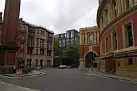 El sitio para el nuevo edificio tiene una larga fachada enfrente de Hyde Park en su lado norte; hacia el oeste está Jay Mews; hacia el este es espacio abierto adyacente al Royal Albert Hall; y el sur tiene vista al antiguo Royal College of Organists. El flanco de este último edificio tiene dos murales sgraffito aplicados en los 1870s. Hay una pendiente a través del sitio de aproximadamente un piso.[14]