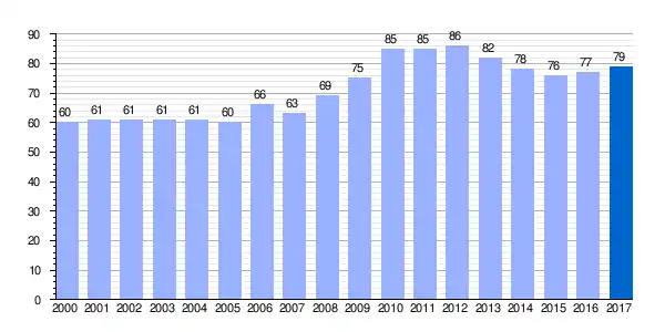 | Gráfica de evolución demográfica de Heredia[7] entre 2000 y 2017 |