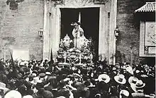 Procesión del Gran Poder, a las puertas de la iglesia de San Lorenzo. Semana Santa del año 1914.