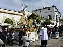 Actualmente el cortejo lleva representantes de todas las hermandades de la ciudad y devotas vistiendo mantilla blanca.