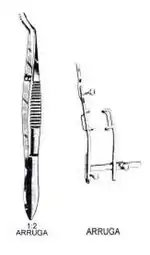 - Retractor orbital de Arruga o Retractor del globo ocular de Arruga.