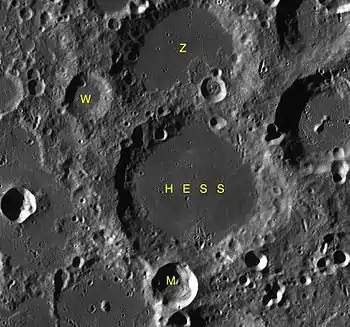 ![]() Hess cráter. Fotografía de la misión Clementine (1994) | ||