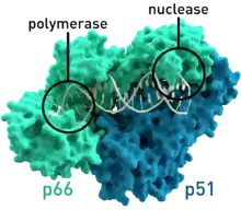 - Transcriptasa inversa. La transcriptasa inversa del virus de la inmunodeficiencia humana es una enzima que cataliza la síntesis de ADN a partir del ARN genómico viral y está formada por dos subunidades diferentes que reciben el nombre de p66 y p51.[3]