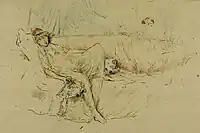 ![]() | Desnudo reclinado Venus | James McNeill Whistler | c. 1892-1893 | Tinta china sobre papel verjurado crema | 18,7 x 26,5 cm | Hunterian Museum and Art Gallery, Glasgow | |