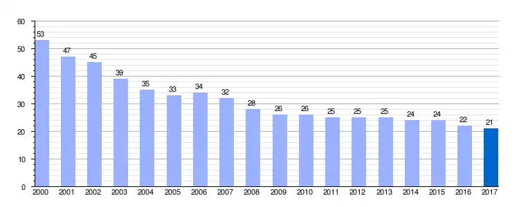 | Gráfica de evolución demográfica de Higón entre 2000 y 2017 |