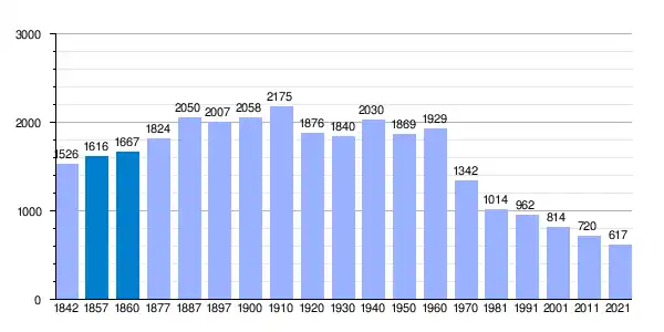 | Gráfica de evolución demográfica de Hinojosa de Duero[8] entre 1842 y 2021 |