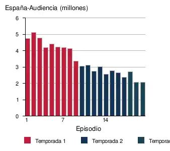 En la segunda temporada consigue una media de 2 795 000 con un 15% de cuota de pantalla y la tercera 2 285 000 con un 13%.[45]