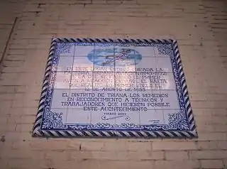 ![]() Azulejo en la fachada de la antigua fábrica. | ||
