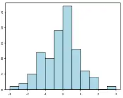 En estadística, un histograma es una representación gráfica de una variable en forma de barras, donde la superficie de cada barra es proporcional a la frecuencia de los valores representados. Sirven para obtener una "primera vista" general, o panorama, de la distribución de la población, o de la muestra, respecto a una característica, cuantitativa y continua (como la longitud o el peso). De esta manera ofrece una visión de grupo permitiendo observar una preferencia, o tendencia, por parte de la muestra o población por ubicarse hacia una determinada región de valores dentro del espectro de valores posibles (sean infinitos o no) que pueda adquirir la característica. Así pues, podemos evidenciar comportamientos, observar el grado de homogeneidad, acuerdo o concisión entre los valores de todas las partes que componen la población o la muestra, o, en contraposición, poder observar el grado de variabilidad, y por ende, la dispersión de todos los valores que toman las partes, también es posible no evidenciar ninguna tendencia y obtener que cada miembro de la población toma por su lado y adquiere un valor de la característica aleatoriamente sin mostrar ninguna preferencia o tendencia.