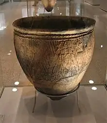 La cerámica antigua ha sido descubierta en Japón, particularmente en Kyushu, que apunta a dos períodos principales: el Jōmon (c. 7,500-250 a. C., 縄 文 時代Jōmon Jidai ) y el Yayoi (c. 300 a. C. - 250 d. C., 時代Yayoi Jidai).[36] Jōmon se puede traducir como «marcas de cordón» o «cuerda marcada» y se refiere al modelo de diseño en la cerámica de la época; este estilo era más recargado que el tipo Yayoi posterior, que se ha encontrado en sitios más extendidos —por ejemplo, alrededor de Tokio— y parece que se desarrolló con fines más prácticos.